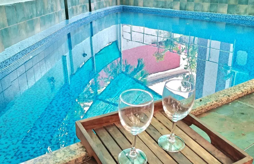 The kitchen amenities feature an electric kettle, a refrigerator, and an oven, provided in an outdoor dining area. The restaurant Earthen Oven is located 5 minutes' walk away and serves Asian dishes. Dabolim airport is 35 km away from Gr Stays Bougain Villa Candolim With Private Pool, Walking Distance To Beach.